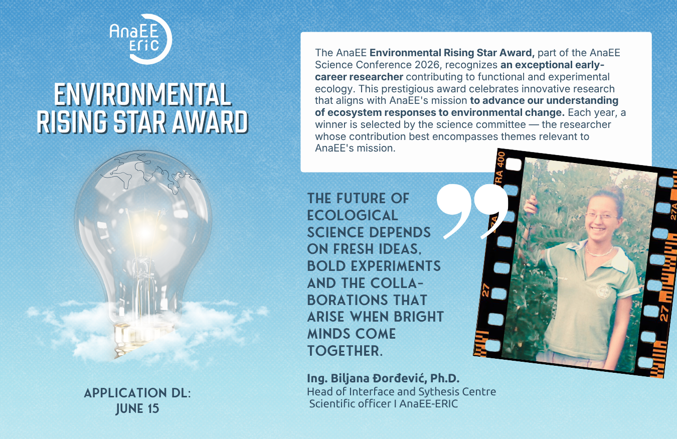 The AnaEE environmental rising star award is part of our commitment to supporting the next generation of environmental researchers and fostering international collaboration in experimental ecology.
